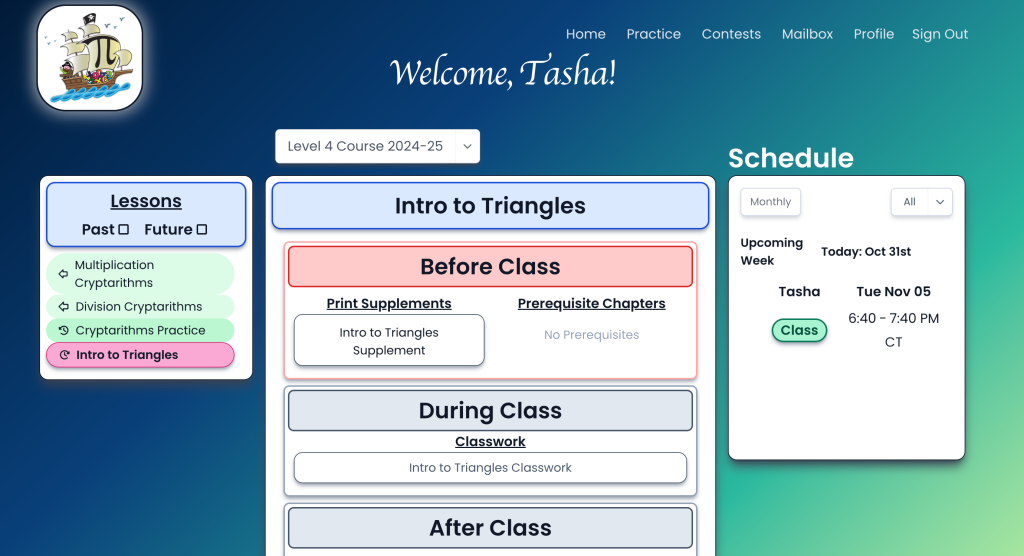For the past two years, the parents of our students have donated to help us build a new Student Portal, and version 1 was launched in August 2024. Without the Student Portal, we would not have been able to support the more than 800 students who are in our program this year. Quite frankly, we hit critical mass in our previous system. Part of our mission is to help as many children as we can, and the Student Portal is helping us achieve that goal.
